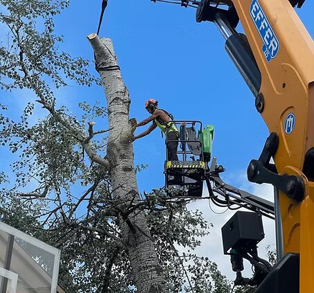 No tree is too large or too difficult for our team to handle. With our advanced crane-mounted trucks, we can safely remove trees from tight spaces or challenging locations. This specialized equipment allows our local tree removal specialists to work with precision, protecting your home, landscape, and surrounding property.